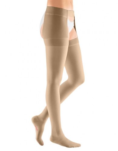 Компрессионный чулок 2-ого класса компрессии mediven plus с застежкой на талии как универсальное решение в лечении заболеваний вен.